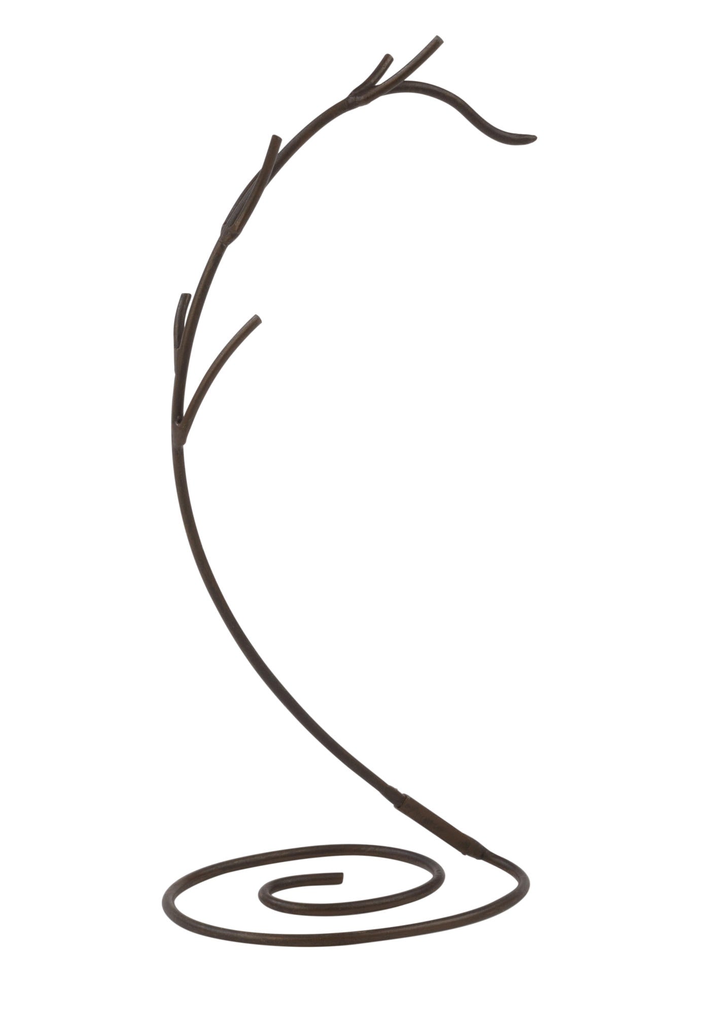 Showcase your ornaments for the holidays or all year long! This is the perfect way to display any type of hanging ornament. This stand is made of metal and features a unique natural branch look. It's brown color makes it the perfect backdrop for any color and style ornament. The stand is 11" tall with a base that is 4.75" wide and 3.5" deep. There is 8.5" of open space for hanging height. Use multiples to create a stunning tabletop display. Can also be used to hang jewelry.