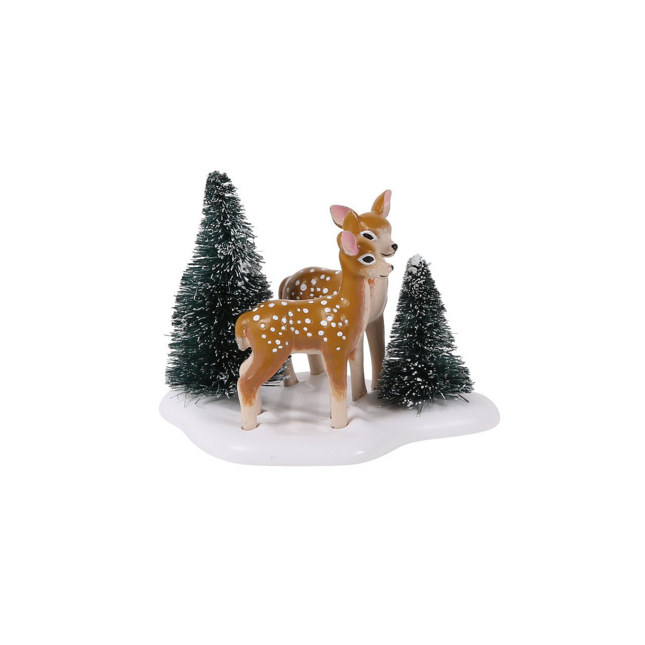 A sweet pair of fawns, spotted in the wild and nestled in freshly fallen snow—nature's gentle magic captured perfectly.