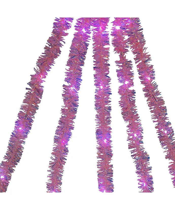 Pink Iridescent Tinsel With Pink Superbright LED Cascade Light 6.5' 100-Light