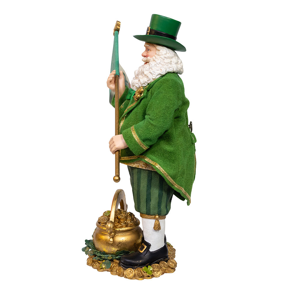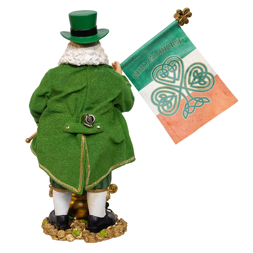 Celebrate the holiday season with a touch of Irish charm with Kurt Adler's 11" Fabriché™ Musical Irish Santa. Crafted with the exquisite detail that Fabriché™ is known for, this Santa wears a traditional Irish outfit featuring rich green tones, shamrock accents, and a classic Santa hat. Holding iconic Irish flag, he is ready to spread holiday cheer with a warm Irish twist. When activated, this charming Santa plays a "When Irish Eyes Are Smiling," adding a joyful sound to your festive displays. Perfect for mantels, shelves, or as a centerpiece, this musical Irish Santa brings a unique cultural flair to your Christmas décor.