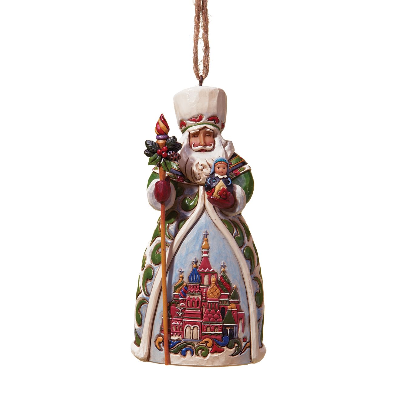 Russia's version of Santa Claus is Grandfather Frost. This colorful likeness shows Ded Moroz, as he's called in Russian, with the staff he uses to traverse the forests while delivering gifts.