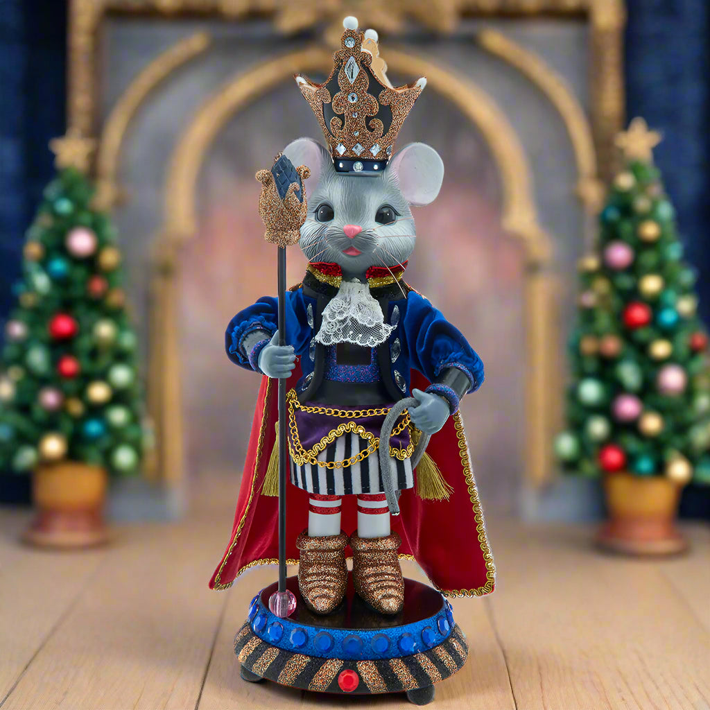 Step into the whimsical world of The Nutcracker with Kurt Adler's striking 15" Hollywood Nutcrackers™ Mouse King Nutcracker. This beautifully crafted piece brings the legendary Mouse King to life, dressed in elaborate attire with rich colors, sparkling details, and his iconic crown. Holding his scepter with an imposing yet playful expression, the Mouse King adds a unique and enchanting twist to traditional holiday décor. Perfect for fans of the classic ballet or collectors of unique holiday pieces, this Mouse King nutcracker makes a wonderful addition to mantels, tabletops, or festive displays.