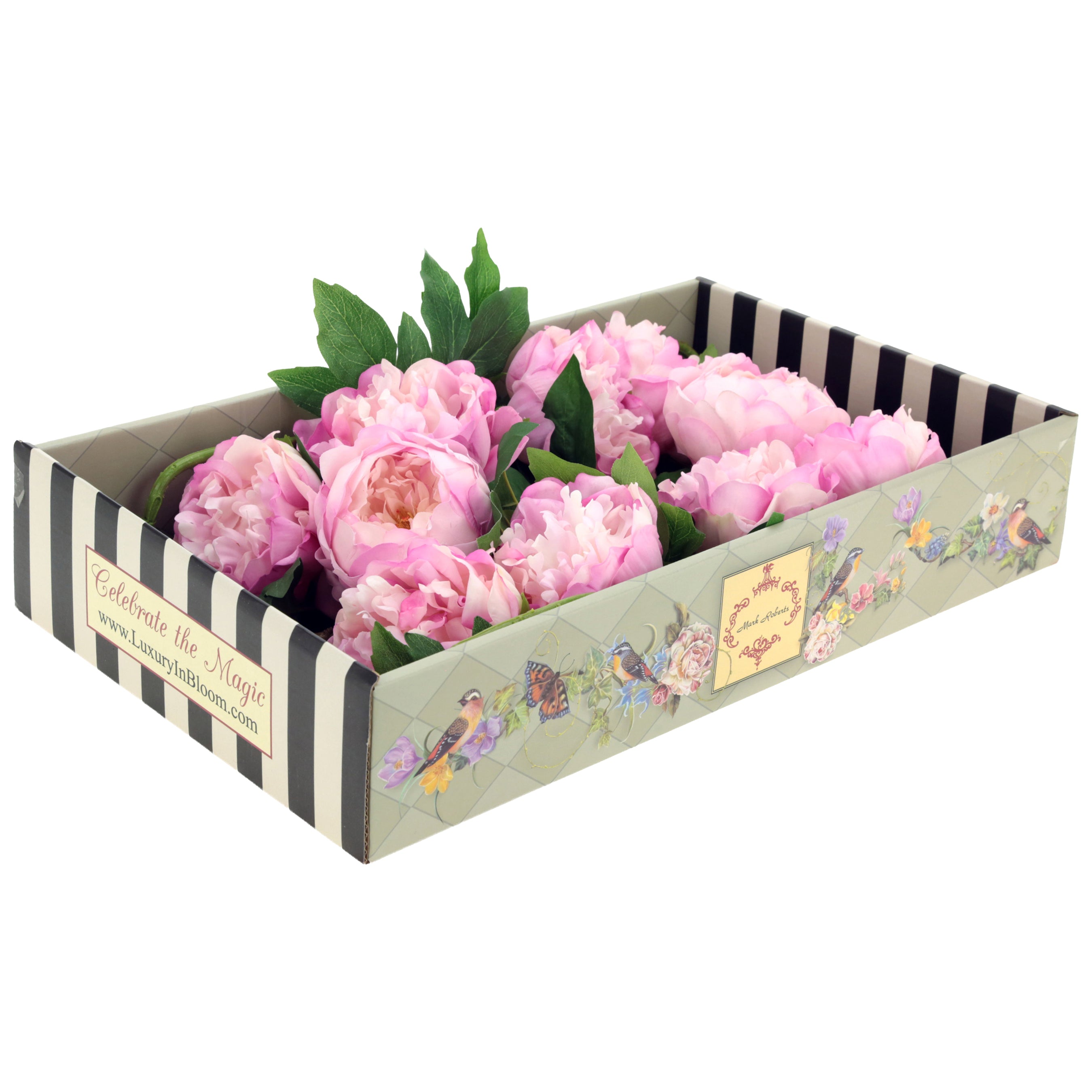 Welcome to a world of Mark Roberts' Florals. This enhanced collection of boxed flower sets make creating stunning arrangements easy and affordable. Each true-to life stem is curated by style and color for you! Stems are wired for your design needs and can be cut or bent to suit the arrangement.