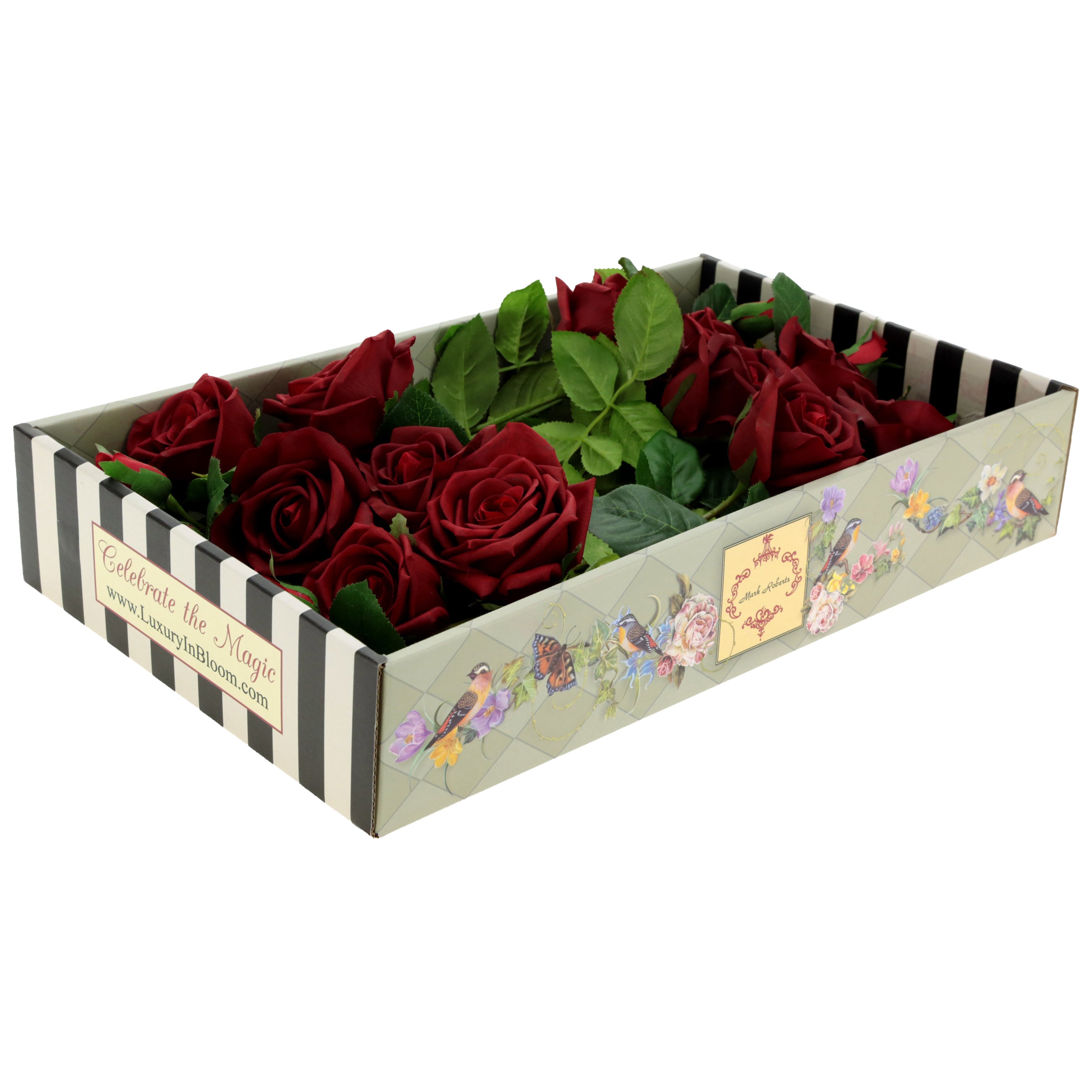 Welcome to a world of Mark Roberts' Florals. This enhanced collection of boxed flower sets make creating stunning arrangements easy and affordable. Each true-to life stem is curated by style and color for you! Stems are wired for your design needs and can be cut or bent to suit the arrangement.
