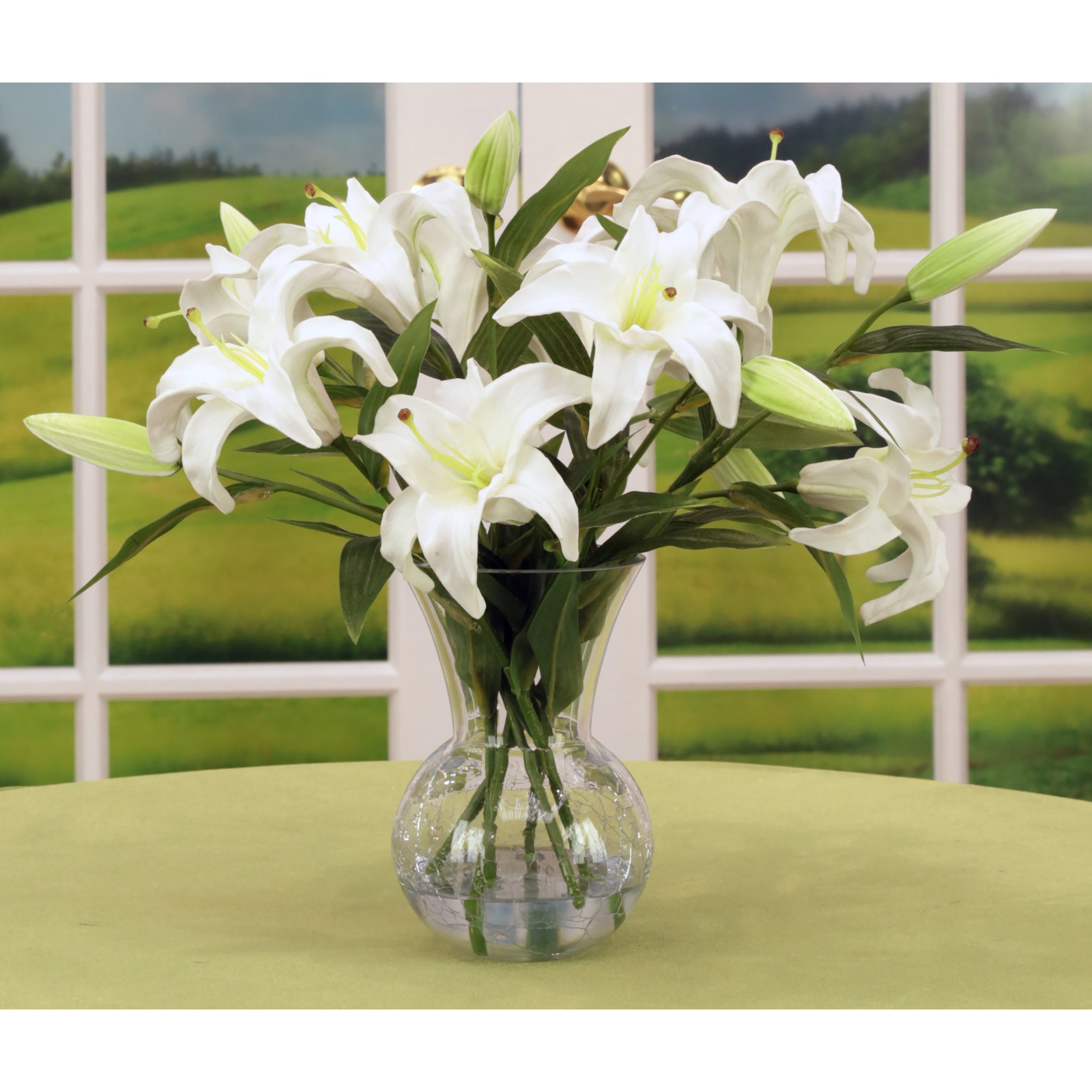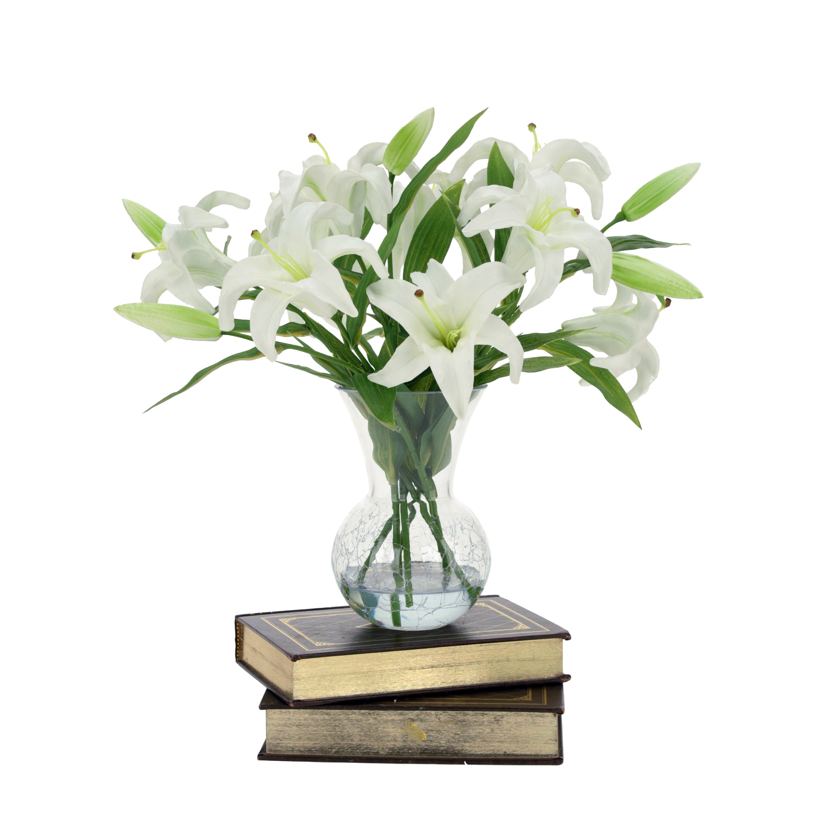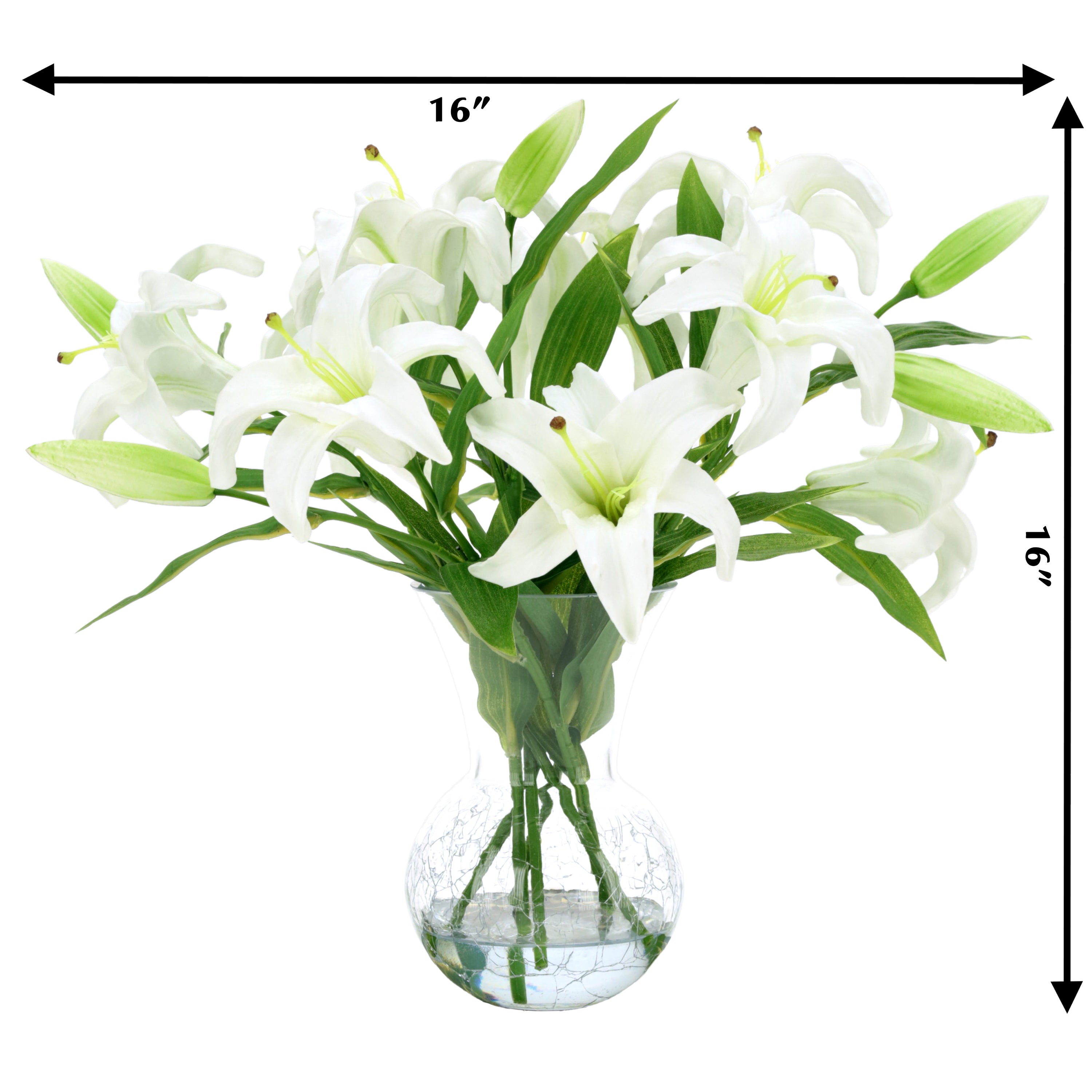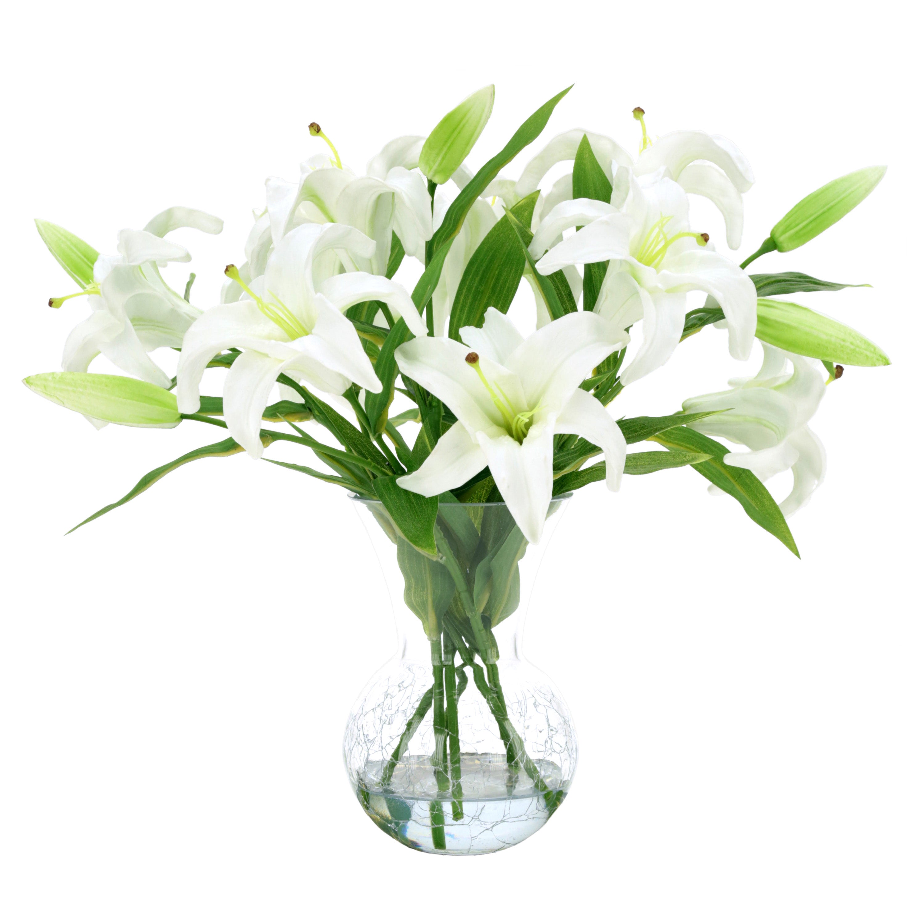 Glass Vase of White Lilies 16 Inches