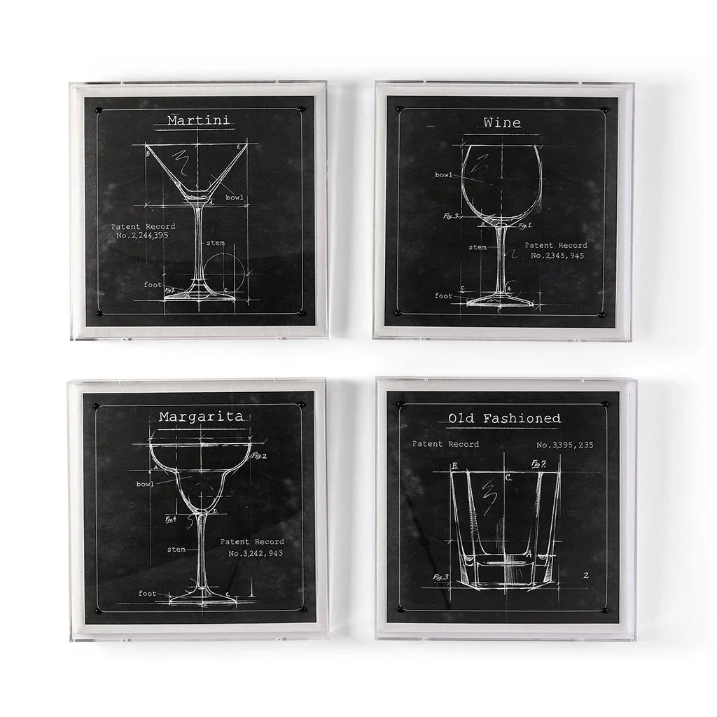 Each glassware that is a staple of many a bar -- celebrates the design and drawing from which product development is made into a glass for a mixed drink or wine.