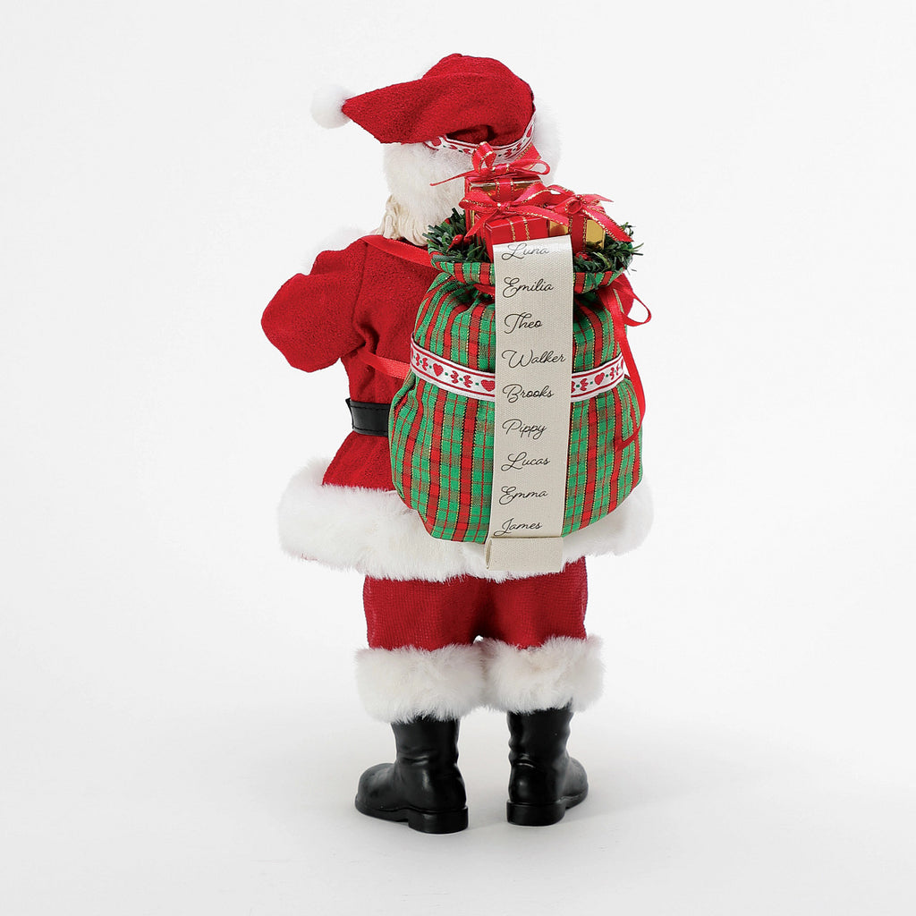 The Clothique stiffened fabric and mixed media details are what makes these Santas truly one to life. Feel the textures and be surprised by the personal details in each piece.