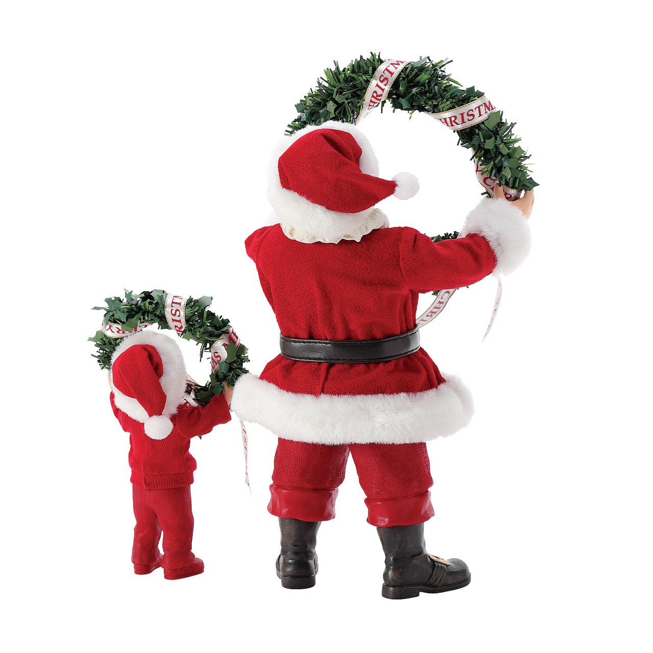 Things are looking very merry for Santa Claus and this young tot as they hold up their matching Christmas wreaths. Wreaths celebrate the cyclical nature of life and this collectible captures that theme perfectly.