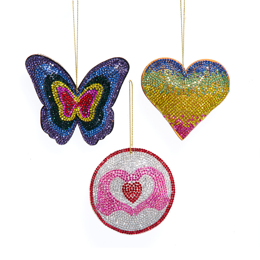 Bedazzled Heart & Butterfly Ornaments 3" SET OF 3