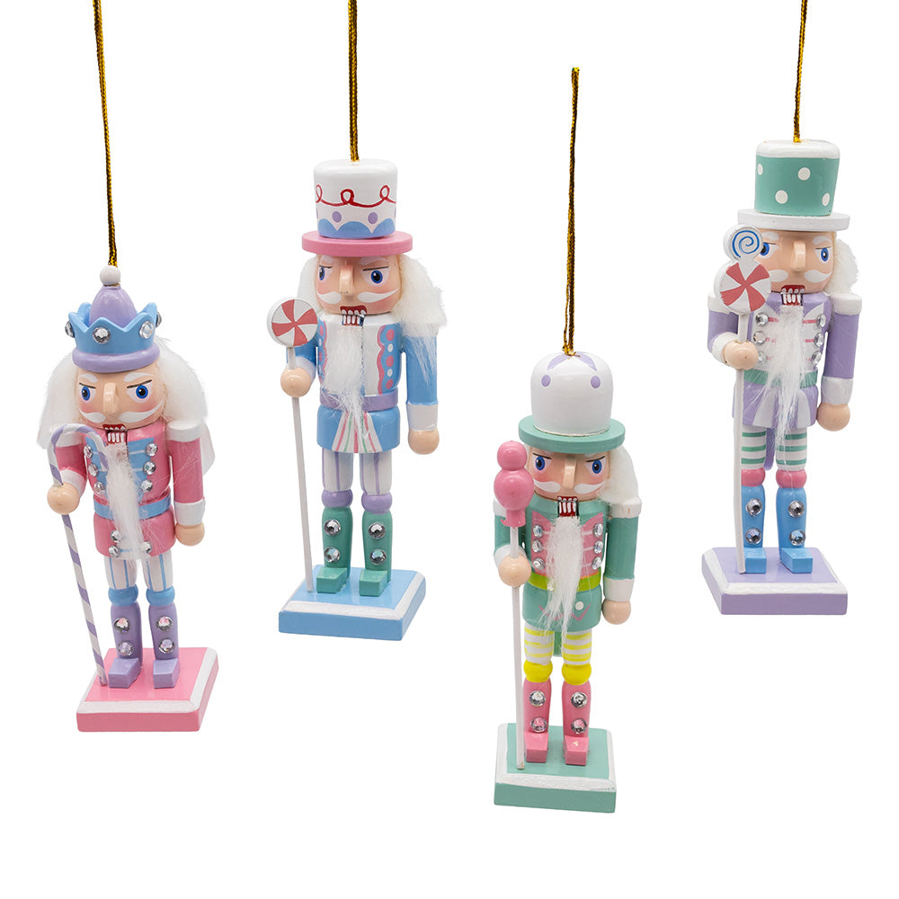 Candy Colored Nutcracker Wooden Ornaments 5" Set of 4