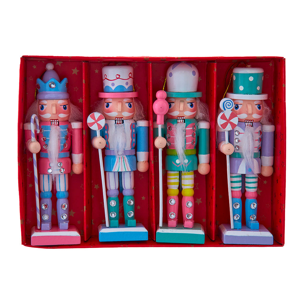 Candy Colored Nutcracker Wooden Ornaments 5" Set of 4