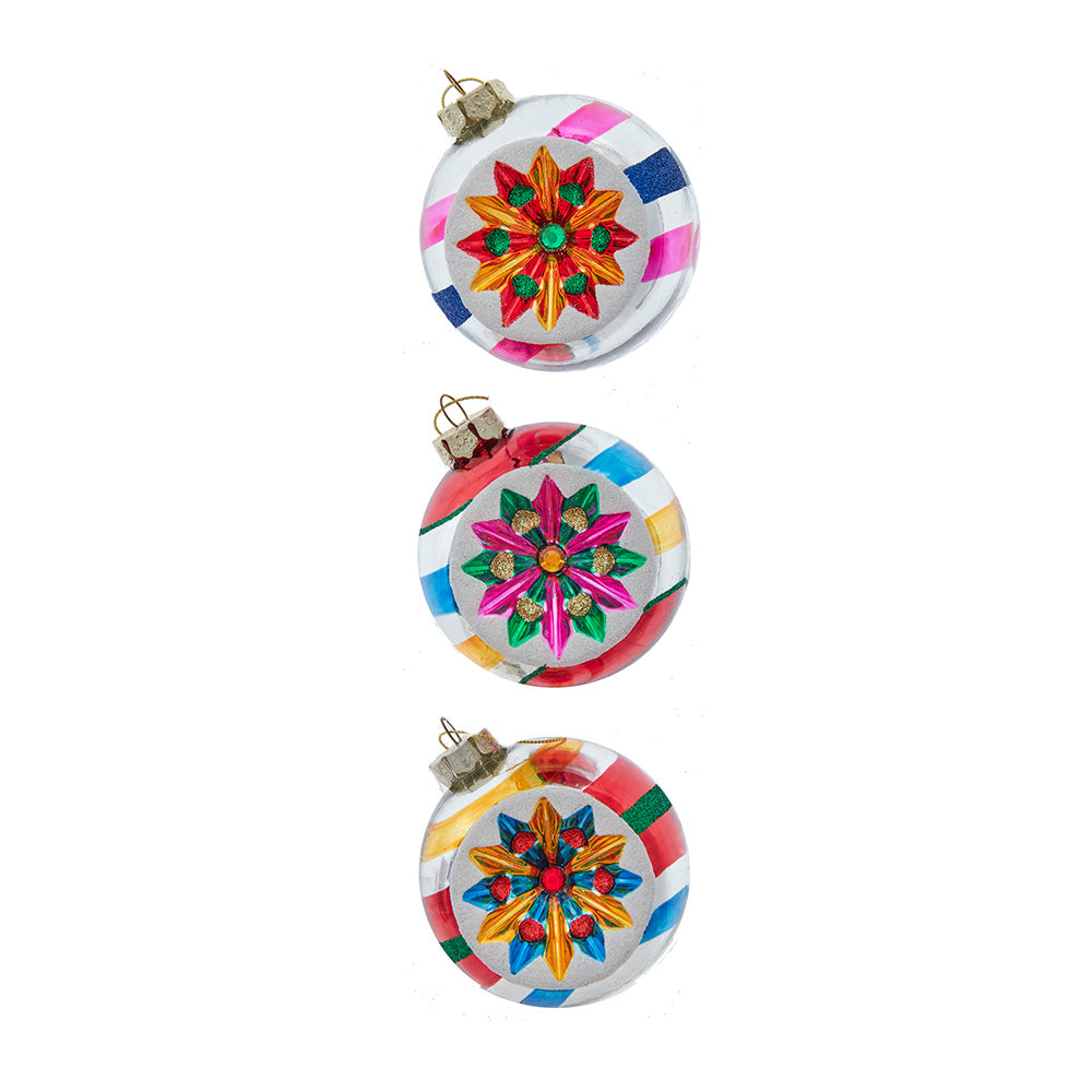 Multi Color Reflector Retro Glass Ornaments 80mm Set of 3