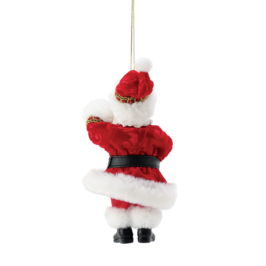 Sparkling ruby accents on Santa's fur-trimmed hat are in celebration of 2025, the 40th Anniversary of Possible Dreams Santas. The Nice List is ready for you to personalize with a permanent marker.