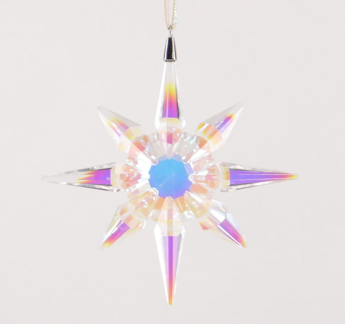 Bring a touch of seasonal enchantment to Christmas trees and festive displays with the Radiant Crystal Starflake ornament. Exquisitely hand-crafted with shimmering iridescent colors and 156 facets for brilliant sparkle.