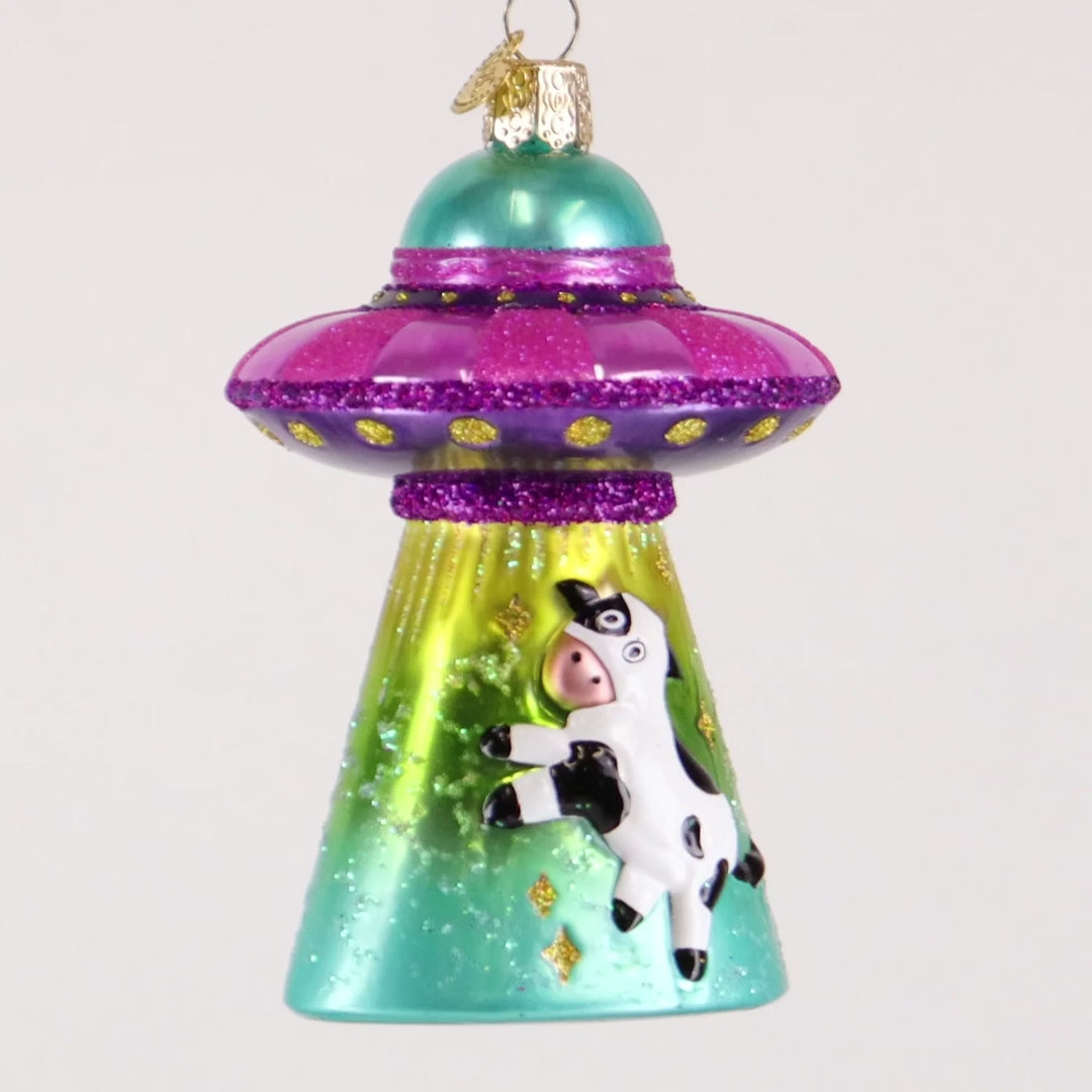 Aliens arrived seeking intelligent lifeforms. As luck would have it, this alien chose a milk cow. The alien may not get much valuable information about life on earth, but the possibility of enjoying a delicious milkshake is high!