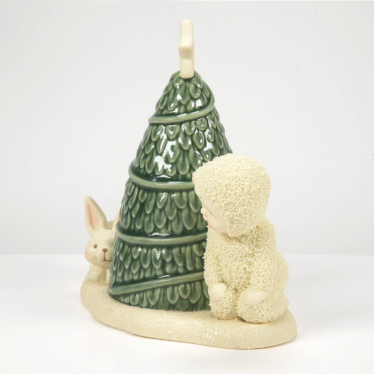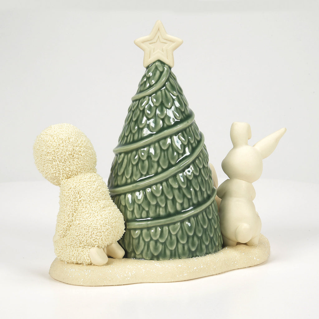 Peek-a-boo, this Snowbaby sees you! Around and around the tree they go. When will they stop? Nobody knows! Part of the 2025 Snowbabies collection.