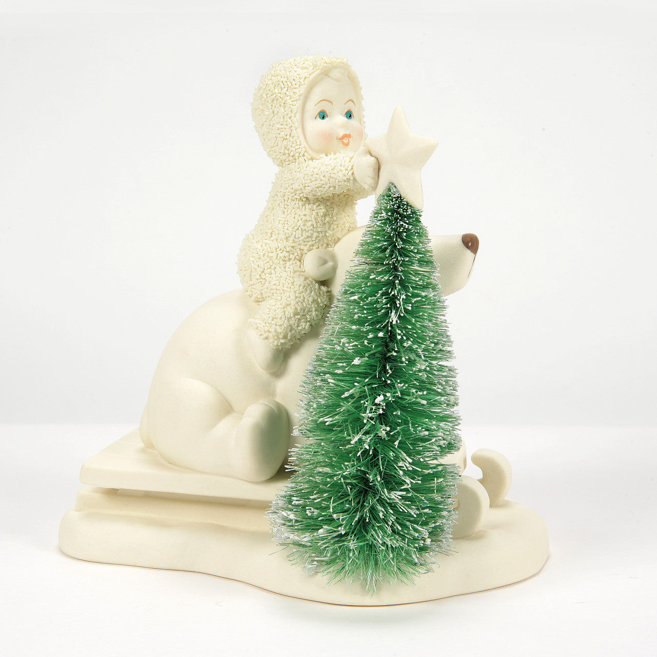 In order to place the finishing touches on their tree, this Snowbaby has recruited their polar bear pal to help them reach the tip top. Part of the 2025 Snowbabies collection.