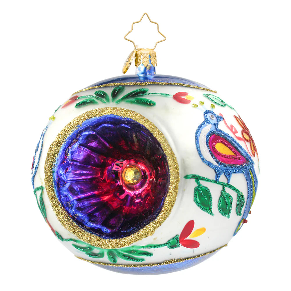 Traditional folk designs of Central European Artists from the 1930’s are the basis of Christopher Radko’s FANTASIA ornaments. A vibrant collection of themes and motifs faithfully translated into lustrous glass decorations. Each blown glass ornament features a beautiful handpainted polish winter scene.