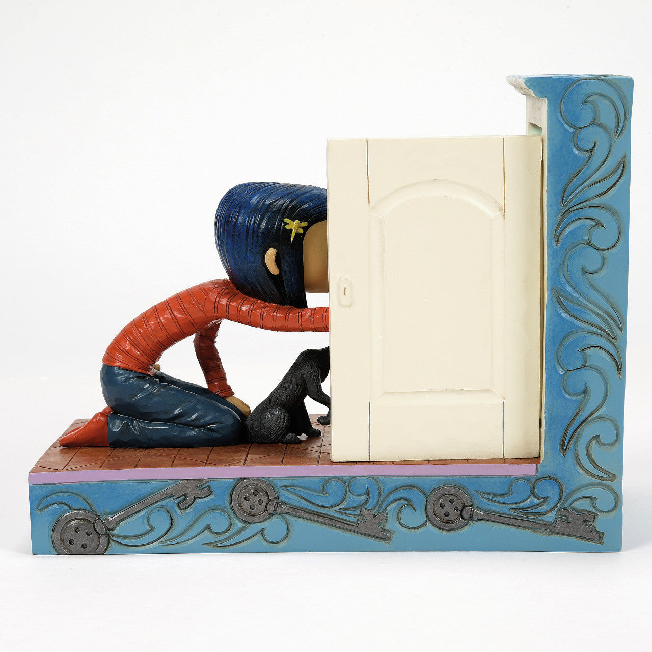 Coraline discovers a hidden door leading to an alternate dimension. With artistic flair, Jim Shore reimagines this monumental scene, adorning it with vibrant flowers and alluring patterns, bringing the magical world of Coraline to life.