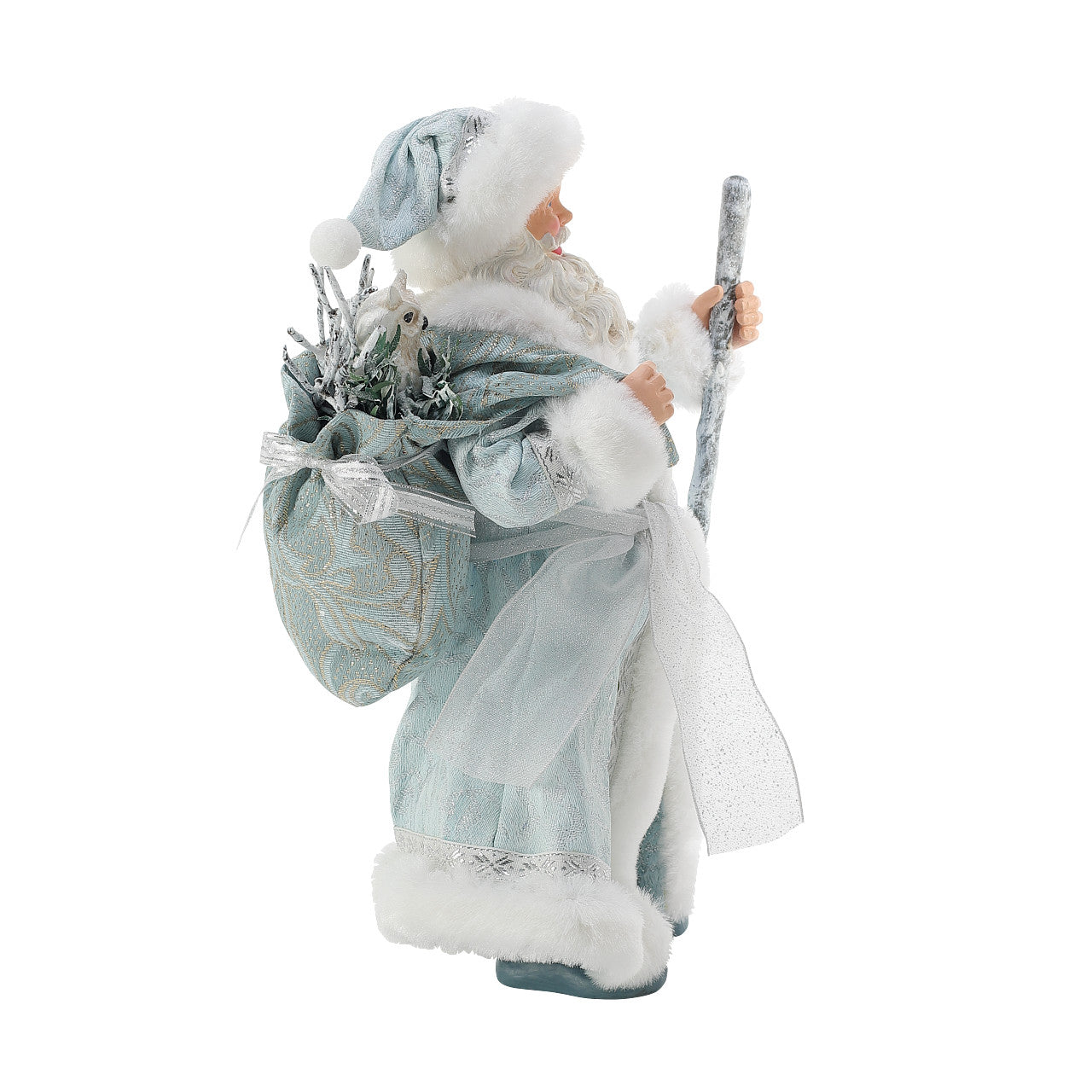 Whooo's ready for winter and the holiday season? Santa is of course. He is dressed warmly in a white fur trimmed ice blue suit.