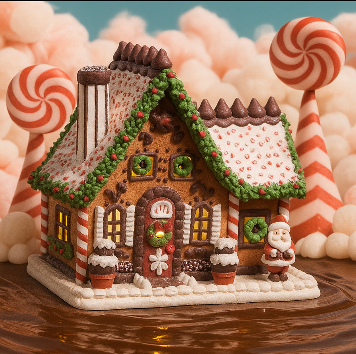 Lighted Chocolate Frosted Candy Gingerbread House 9"