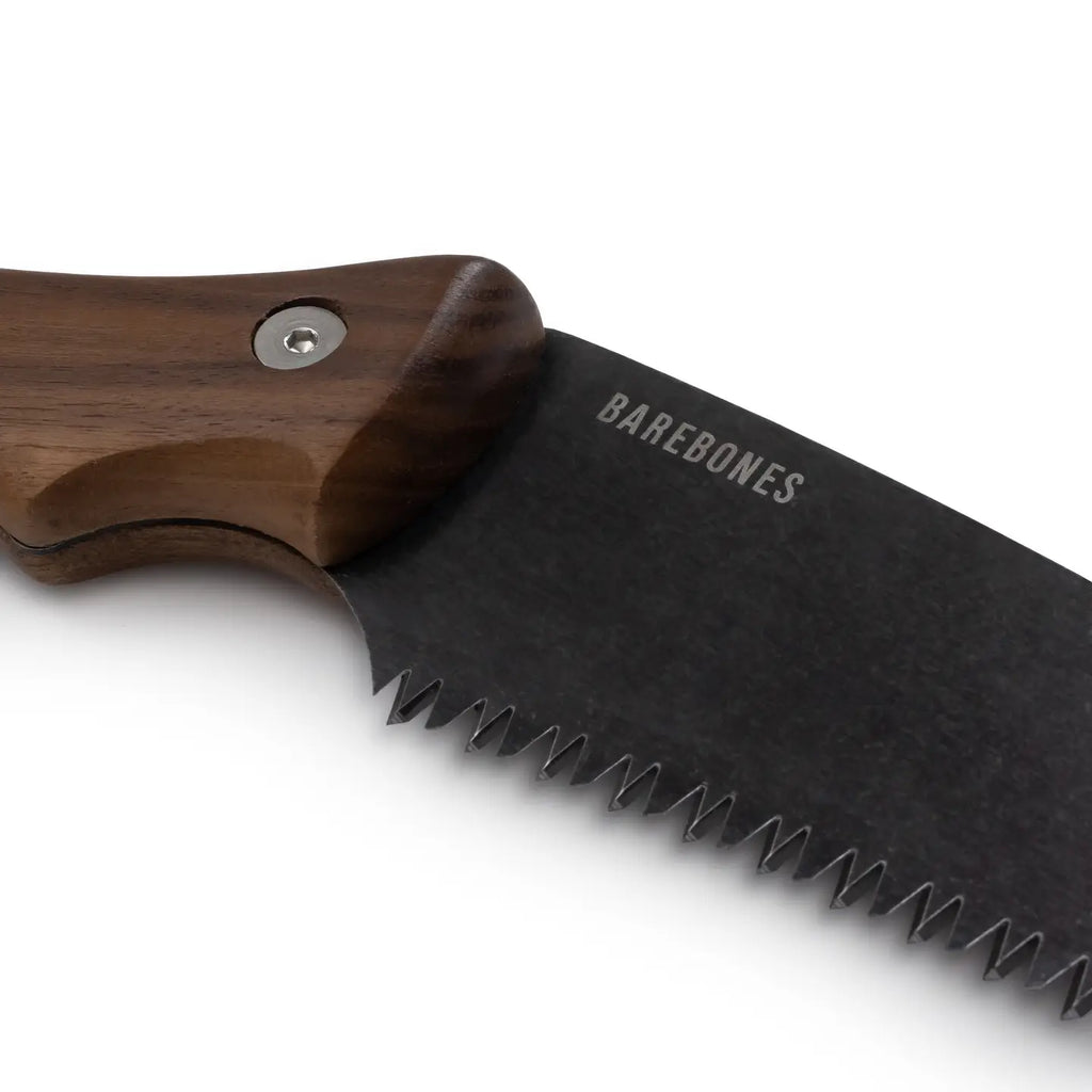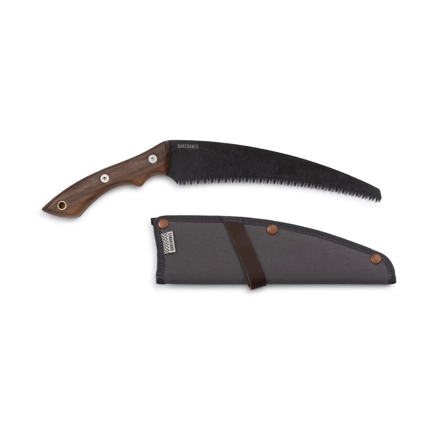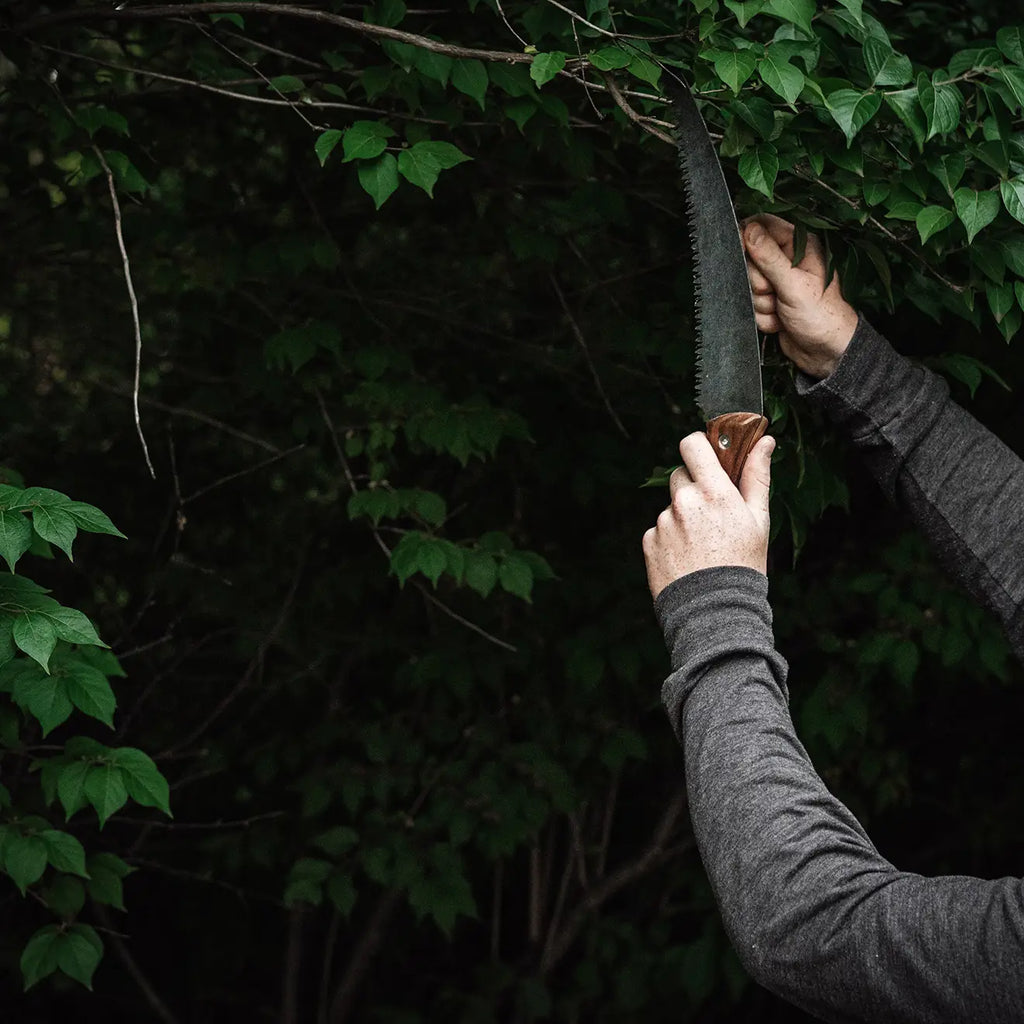 Inspired by a traditional Japanese hand saw, the Timber Saw provides a quick, clean approach ideal for cutting smaller pieces of wood at a campsite, cutting off branches and deadwood, and pruning trees. While traditional hand saws rely on a pull-push motion, the simple curved blade and aggressive teeth of the Timber Saw require a push-strike motion. The result is a super effective, safe, and fast cut. Ergonomic and durable walnut handle fits smoothly in your hand for perfect, even pressure and pulling strokes.